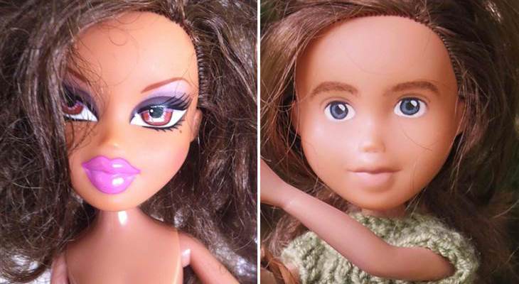 A worthy endeavour for sure, and I admire the determination, except that some of the makeovers remind me of the girls at school who bit their toenails, hung out by the fence and never made eye contact with anyone else. I have to cut the re-doers some slack as they are not makeup artists, but honestly, the new doll face appears disturbing and other-worldly, reminiscent of a ‘children of the corn’ look.